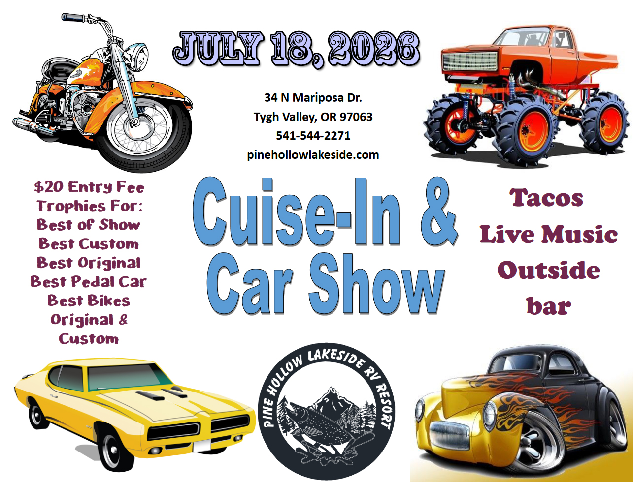 Bring your cars and motorcycles. Trophies awarded for best original, best custom, best paint, best American bike, and best import and more.